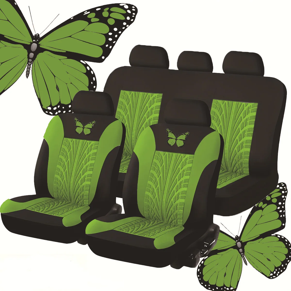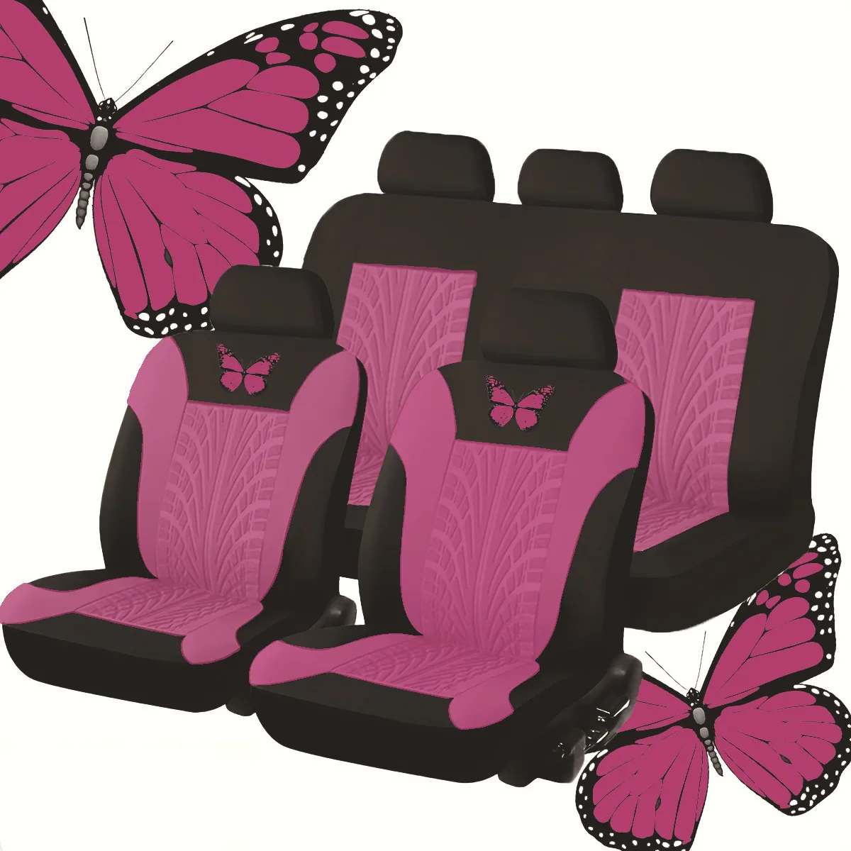 Upgrade your vehicle's interior with this premium 9-piece universal seat cover set, designed to fit most five-seater cars. Crafted from high-quality leather, these covers feature an elegant butterfly indentation pattern that adds a touch of sophistication while providing exceptional comfort. The set includes covers for front seats, rear seats, and headrests, offering complete protection for your vehicle's upholstery. The durable leather material is easy to clean and resistant to wear and tear, making it perfect for daily use. Installation is straightforward with the elastic edges and secure fastening system. The ergonomic design ensures a snug fit while maintaining breathability for enhanced comfort during long drives. Transform your car's interior with these stylish, practical seat covers that combine luxurious aesthetics with superior functionality and protection.